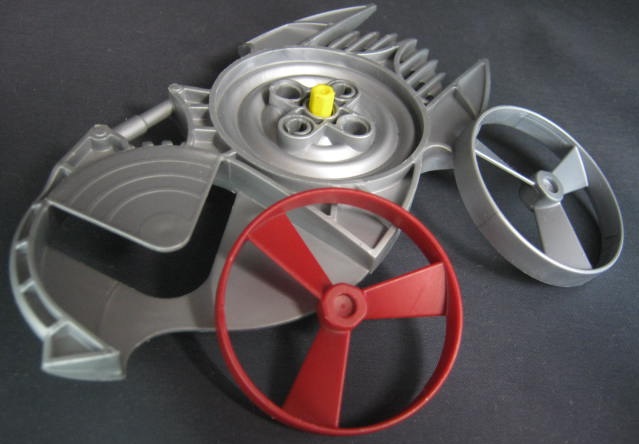 シールドにはスピナーを1つ下にストック出来る他、上部の黄色いピンにスピナーをセットしてリップコードを入れてから引き抜くことで、回転させて発射することが出来ます。2005年の共通ギミックであるスピナーは盾に付きました。予備の色が違う上にシールド内にストック出来るのが面白い。ただ発射部分には固定できないので2個セットして遊ぶのは難しそう。また、ノリックのシールドには中央の形状が一部埋まっているエラー品が存在し、表裏を変えて組む指示の描かれたステッカーがパッケージに貼られていた記憶が。