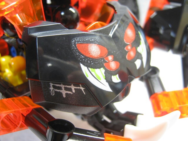 スパイダーと言いつつ脚が六本しかありませんが、バイオニクルじゃ良くある事だし今まで蜘蛛をモチーフとしたモノは四本脚だったりした事を思えば良い方かと。口回りのキバまで再現されてます。