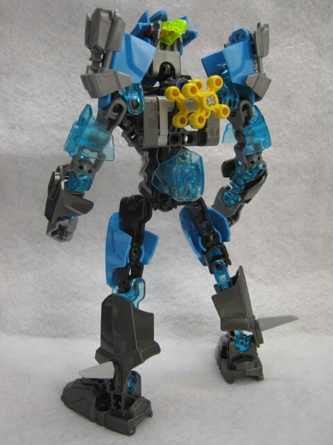 タフ同様に、貫通ボールジョイントを四個使って肩とその上にアーマーが別に付いているのもポイント。青のアーマーは今までのモノより薄いカラーのモノなので作品に使うには数が必要となりそうですね。背中のレバーを回せば右腕をスイングするギミックも搭載。