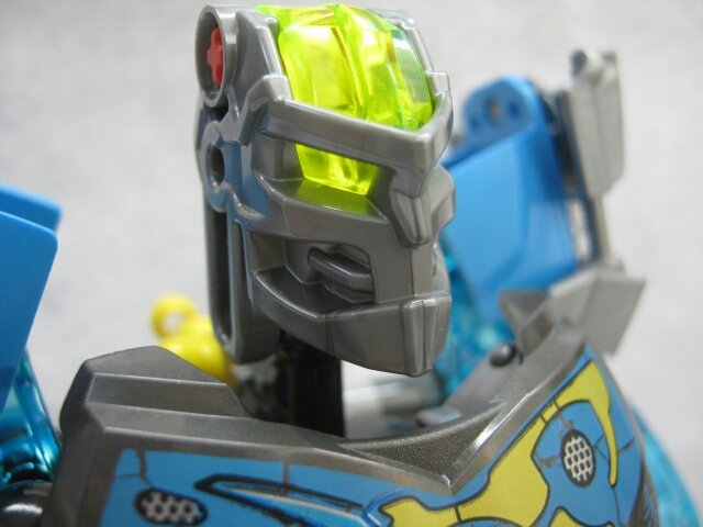 マスクオブウォーターもアーマー等と同じ薄いカラー。新シリーズのトーア六体の中では恐らく一番マスクの変化が大きいです。旧シリーズではクリアブルーでゴーグルとガスマスクを付けた様なデザインでしたが、今回はどちらかと言うとトーアヌーバ版に近い気がします。