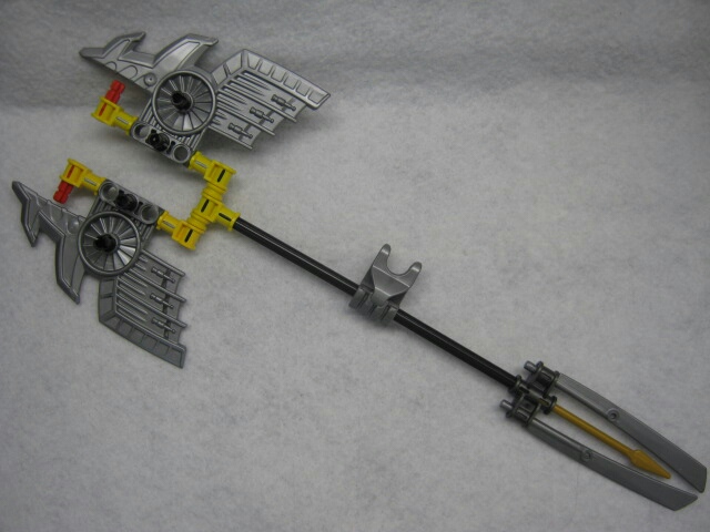 に分解可能。ハープーンは槍と言うか銛というか、実質コッチがトライデントですね。シャークフィンは足に履かせる事でヒレになります。斧が武器だったり足に履かせてヒレになる点等、トーアヌーバ版の要素を強く引き継いでいますね。