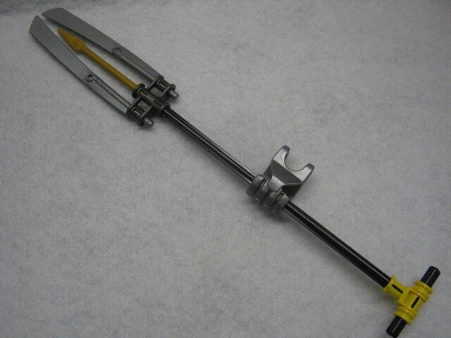 「エレメンタルトライデント」が武器として付属。ガーリは武器の重みに耐える為か、ギアギミック固定用のギアが四個に増えています。